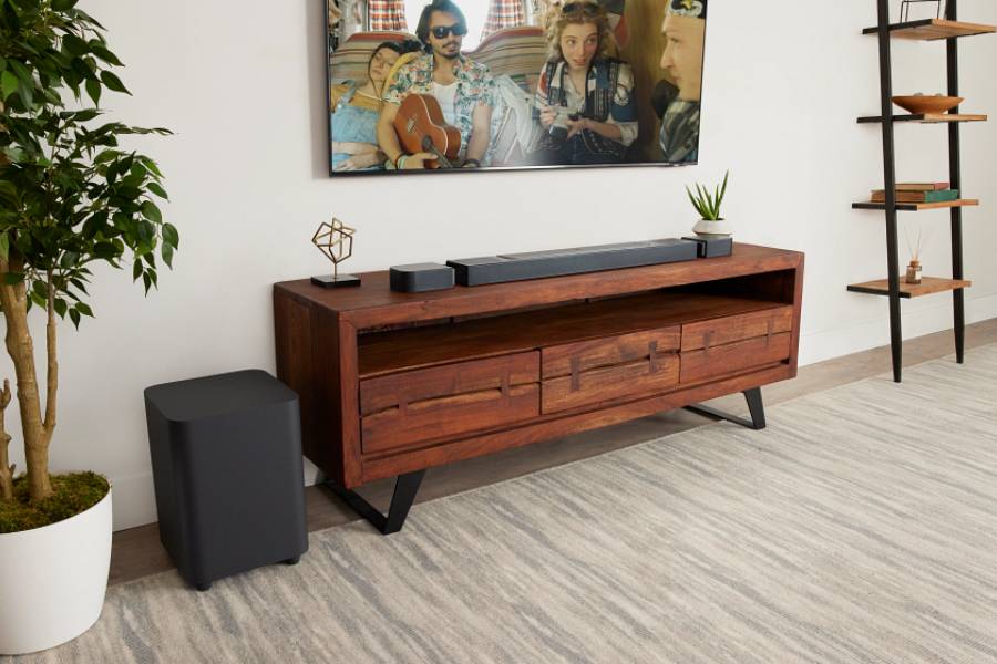 Desfrute de som surround Dolby Atmos não compactado em um único cabo HDMI graças à conexão HDMI eARC. Esta conexão de entrada HDMI oferece qualidade de vídeo 4K a partir de um videocassete ou console de jogos compatível. O subwoofer sem fio de 10 polegadas oferece graves potentes e precisos para maior emoção ao assistir filmes e ouvir suas músicas favoritas.
