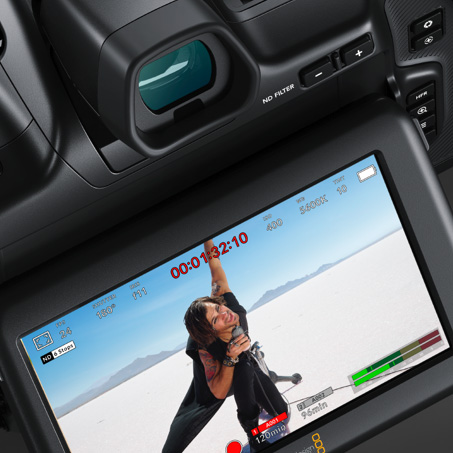 A Blackmagic Pocket Cinema Camera possui uma grande e brilhante tela sensível ao toque de 5 polegadas que facilita o enquadramento das fotos e o foco com precisão. Isso significa que você não precisa carregar um monitor externo! As sobreposições na tela mostram o status de registro e parâmetros, histograma, indicadores de pico de foco, níveis, guias de quadro e muito mais. Você pode aplicar LUTs 3D rapidamente para monitorar as fotos com a cor e aparência desejadas. O monitor LCD Pocket Cinema Camera 6K Pro é um monitor HDR mais avançado que pode ser inclinado para cima e para baixo para facilitar o monitoramento de sua foto de qualquer posição. Além disso, a tela HDR do 6K Pro possui 1500 nits de brilho, ideal para uso sob luz solar forte!